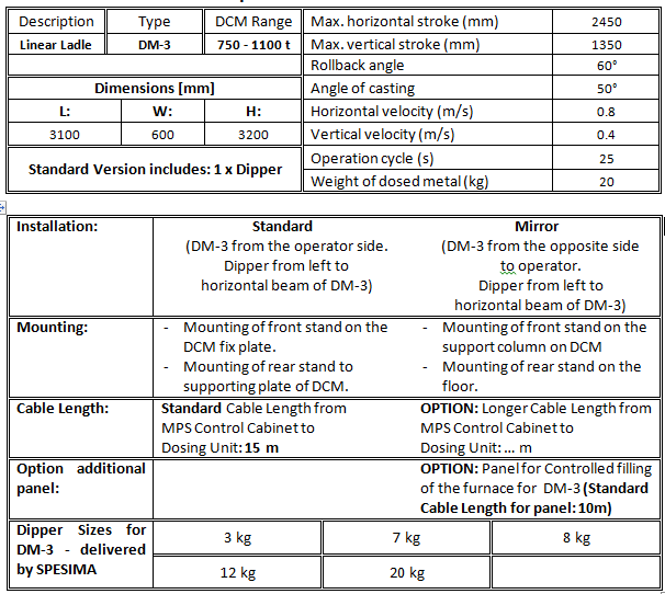 LINEAR LADLE FOR MACHINES BETWEEN 1100-2500 TONS