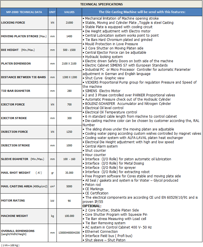 MP-2000 TONS DIE CASTING MACHINES