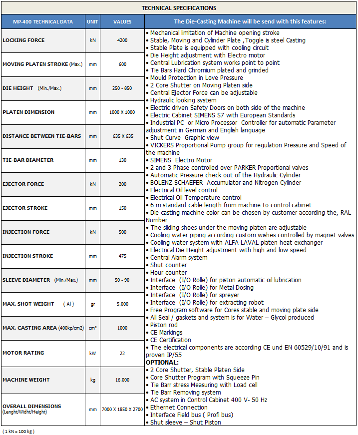 MP-400 TONS DIE CASTING MACHINES